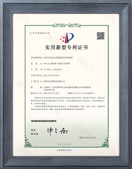 具有应急启动功能的电池管理系统-实用新型专利证书